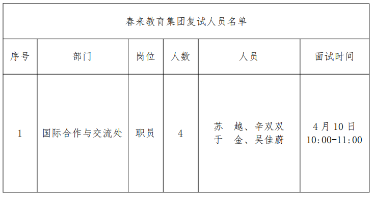 根据春来教育集团2026年度公开招聘工作的相关要求,现将2026年3月23日、4月8日春来教育集团招聘初试结果及复试相关事宜安排如下。