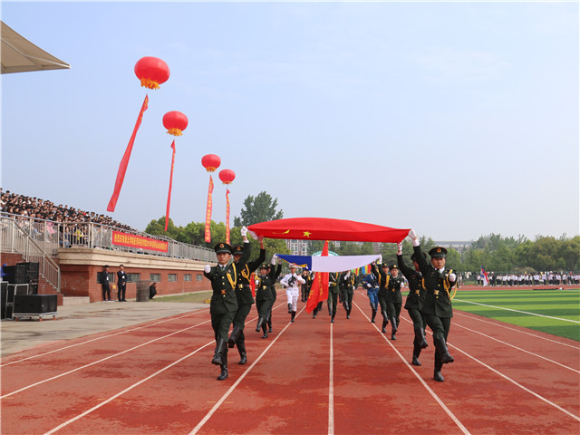 伴随着慷慨激昂的进行曲,入场表演正式拉开帷幕。国旗班方阵率先入场,他们飒爽的身姿、铿锵的步伐展示着我院学子的蓬勃朝气与青春风采。热血翻涌,阳光洒落,各方队高举队旗,精神抖擞,步伐矫健,展示别样风采,赢得了全场师生的掌声和欢呼。
